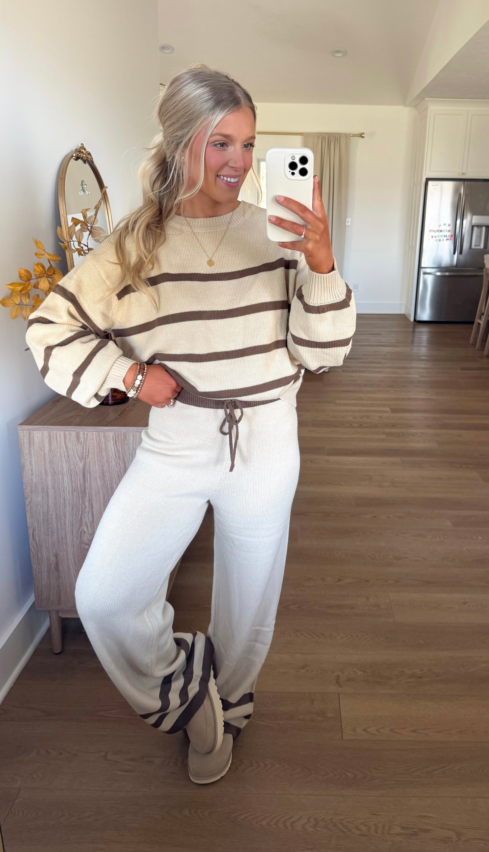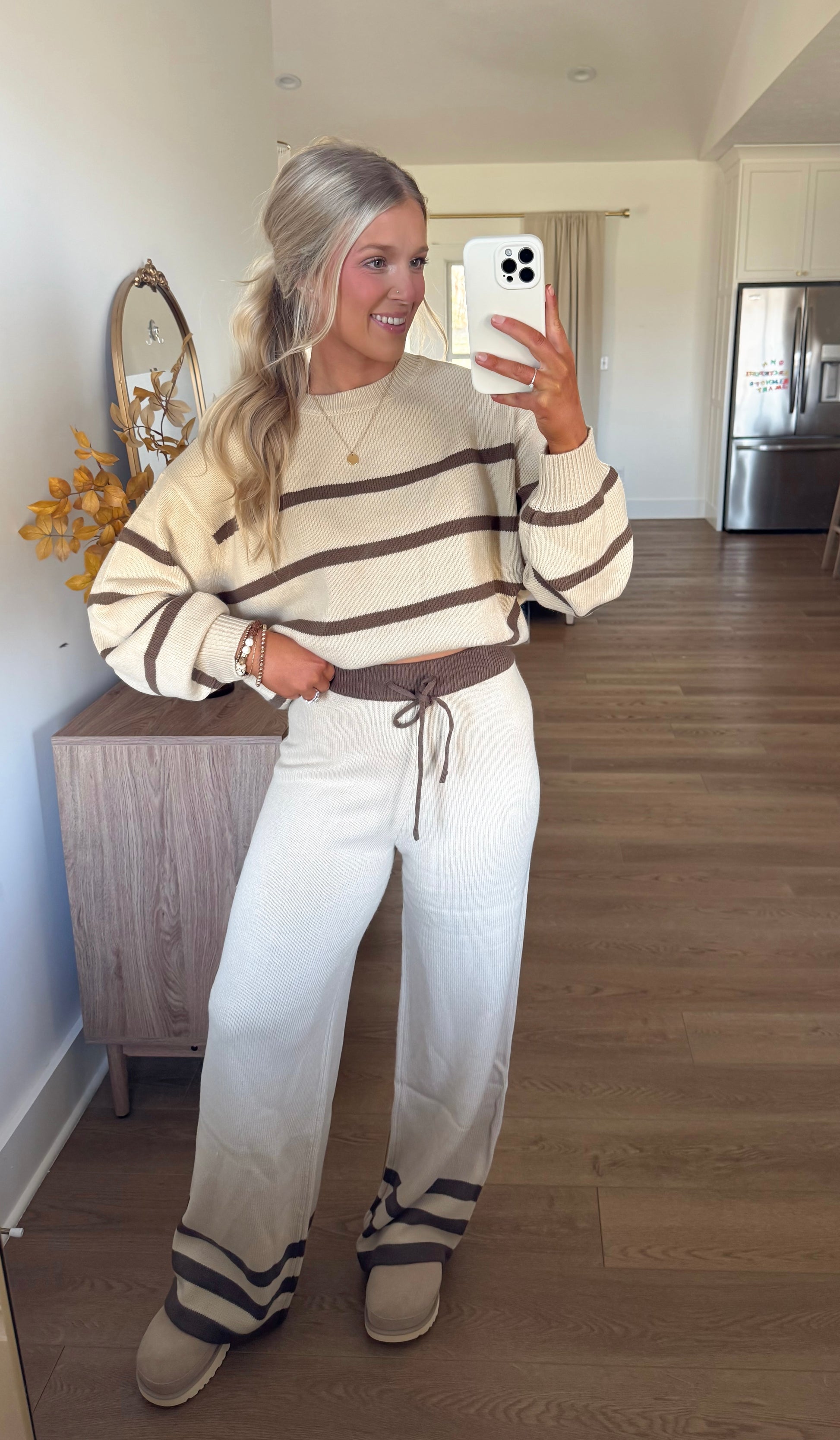 Two-piece set: striped sweater and matching pants