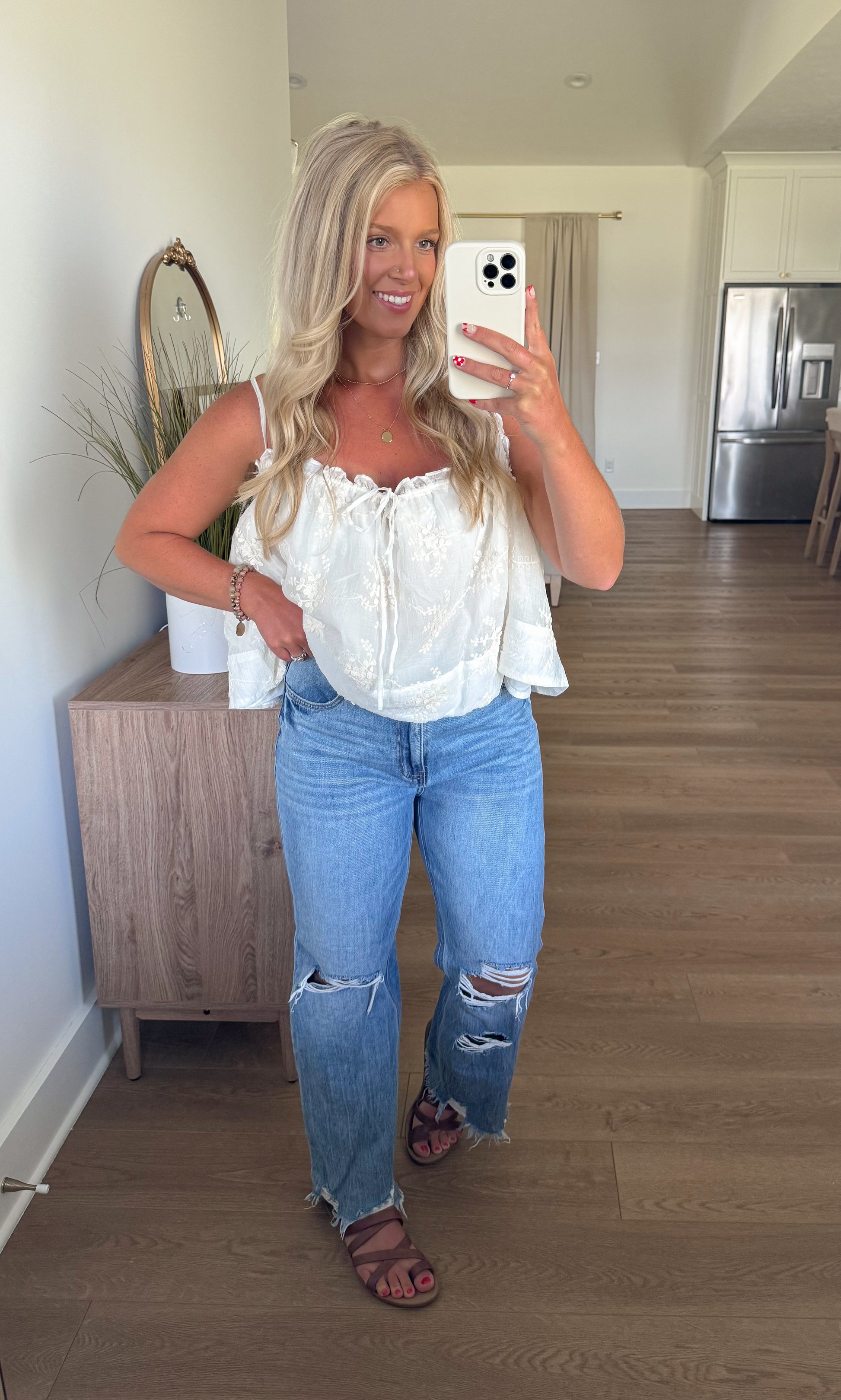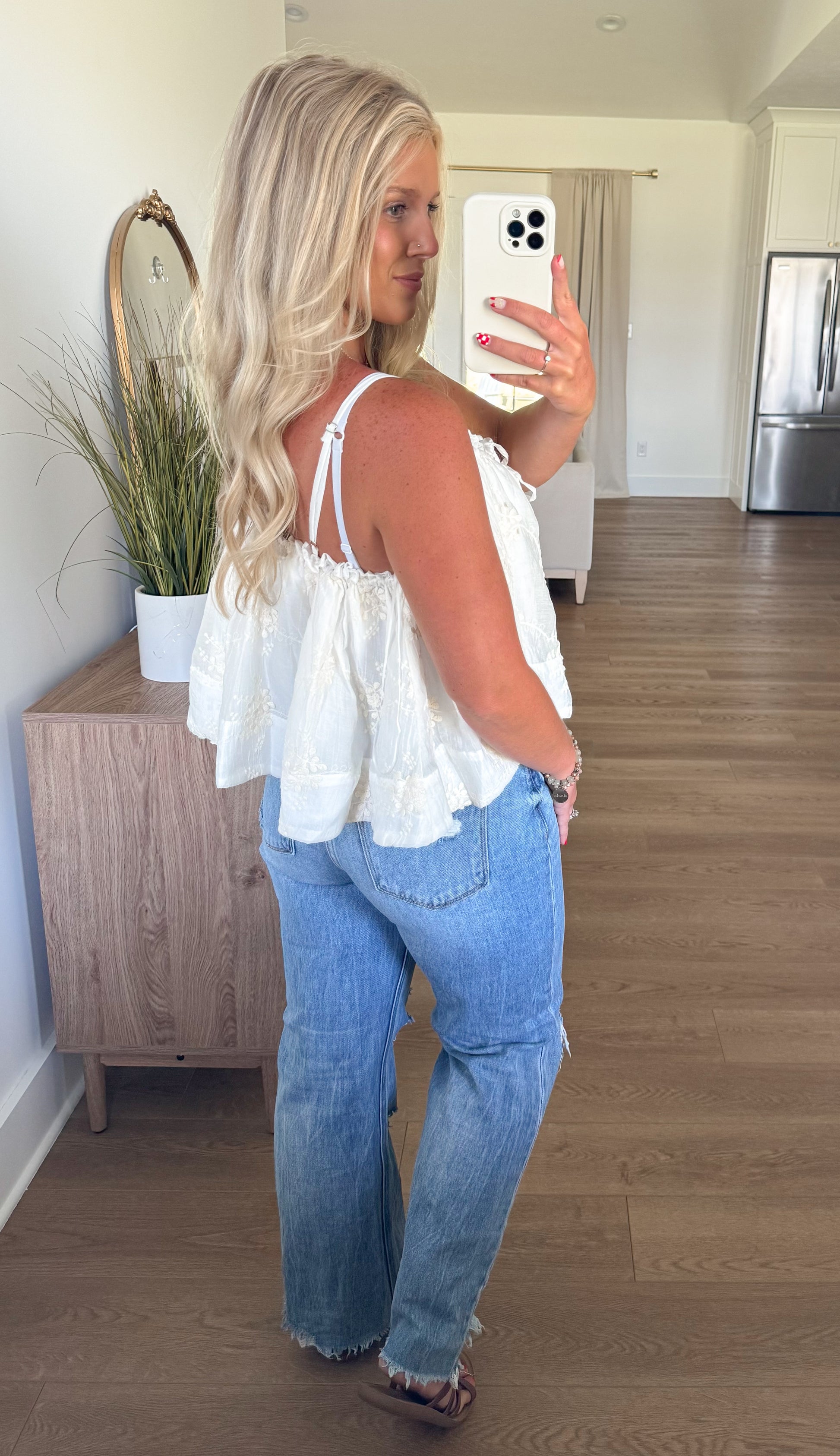 This Ivory Embroidered Top is a delightful mix of detailed embroidery and playful shirred accents that create a lovely, flowing shape. Its charming design adds a touch of whimsy to any outfit, making it your go-to piece for effortless style and fun vibes.