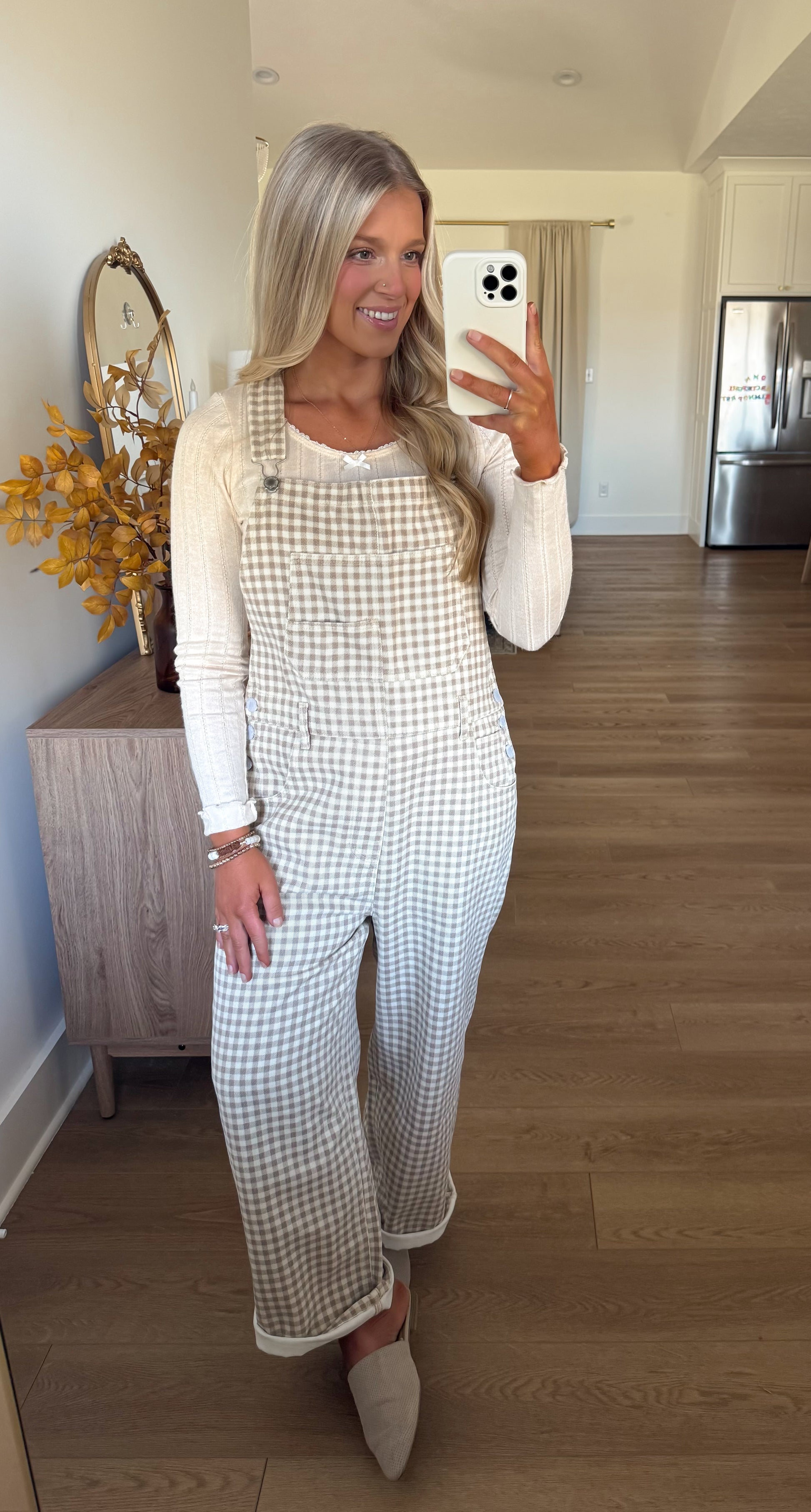 These are the cutest overalls — and trust us, you’ll be reaching for them on repeat! Made from soft and comfy cream and taupe gingham denim, they’re the perfect blend of playful and practical. Designed with adjustable straps for the ideal fit and finished with functional side and back pockets, these overalls are made for easy, everyday wear.