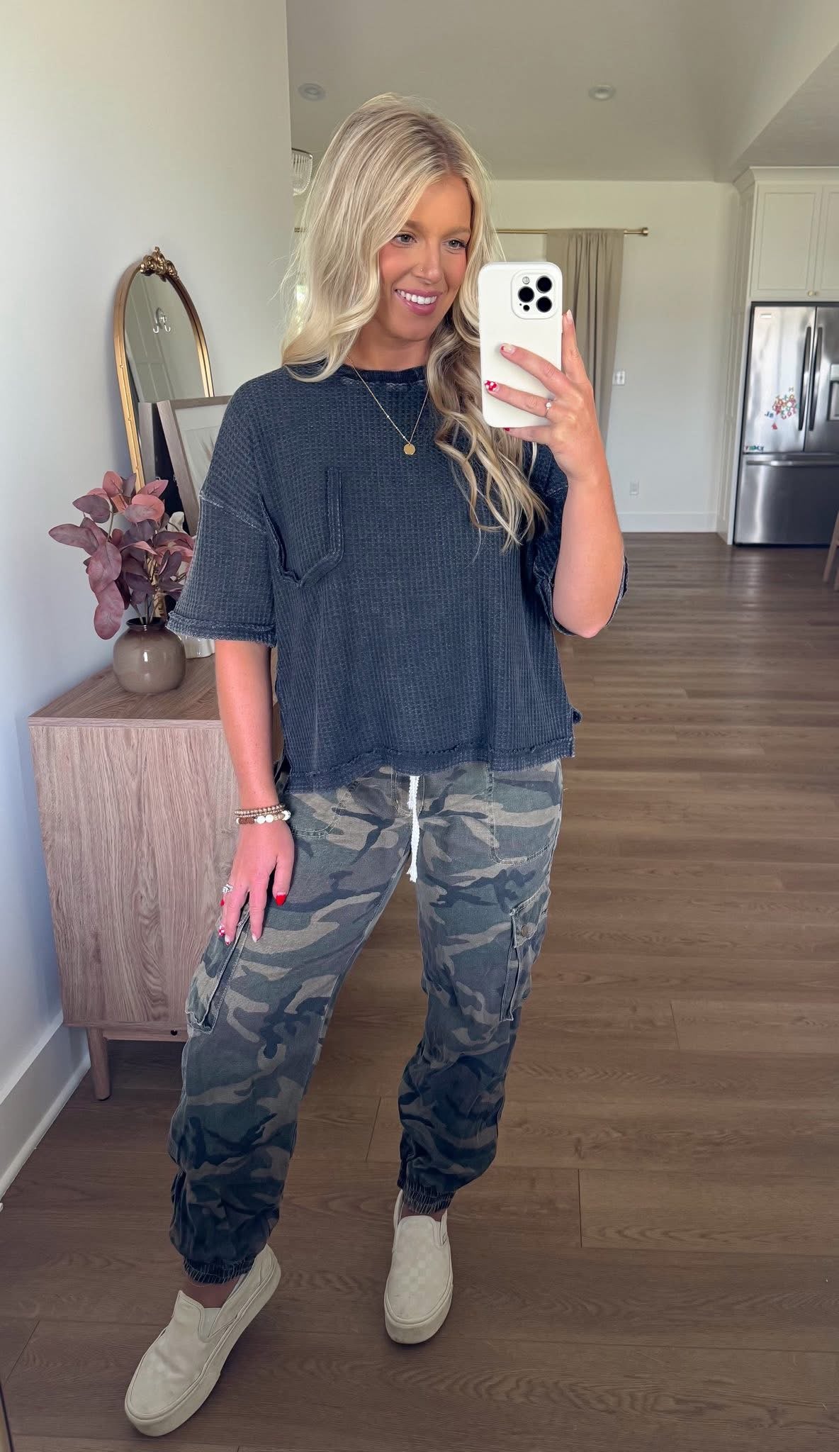 The Mineral Wash Waffle Knit Short Sleeve Top is a versatile and stylish addition to your casual wardrobe. With its mineral wash finish, this top boasts a trendy and edgy look that sets it apart from basic tops. The waffle knit texture adds a cozy element to the design, providing both comfort and visual interest.