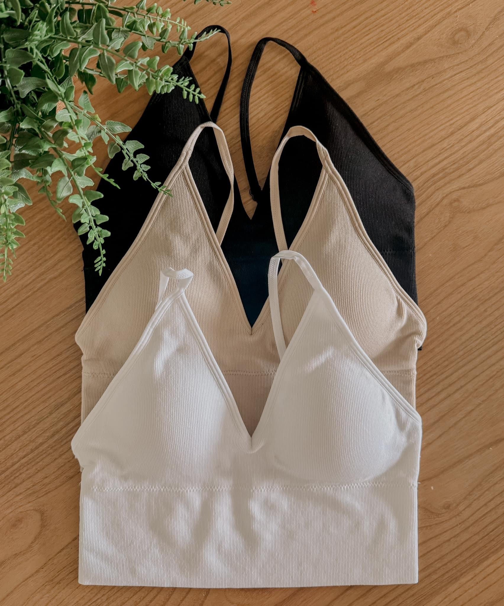 Get the ultimate comfort with our Ribbed Bra! This ribbed brallete top features padded cups for extra support and a flattering fit. Perfect for any casual day, this top will make you look and feel amazing. Perfect to wear with knitted sweaters or off one shoulder tops.