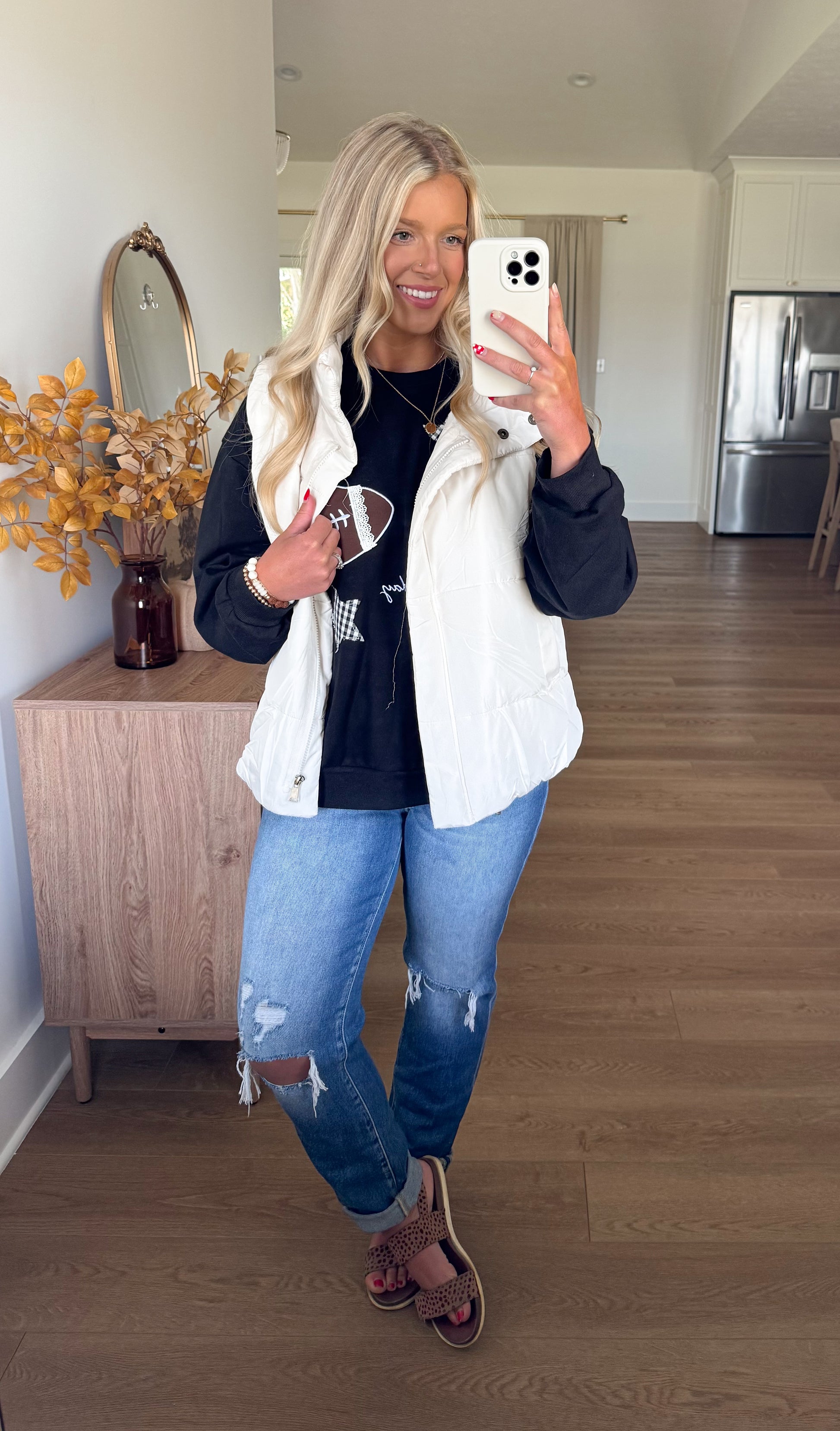 Get ready for comfort season with this super cute and functional sleeveless puffer vest featuring a front zip-up closure, and pockets. Perfect transitional outerwear item.