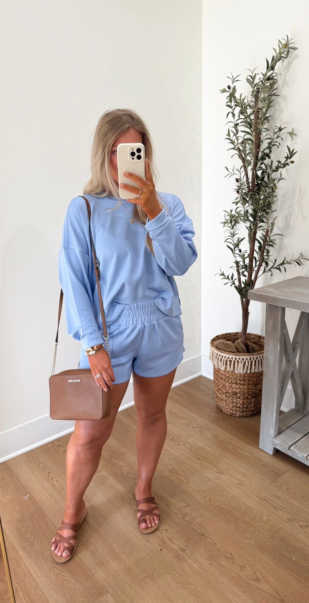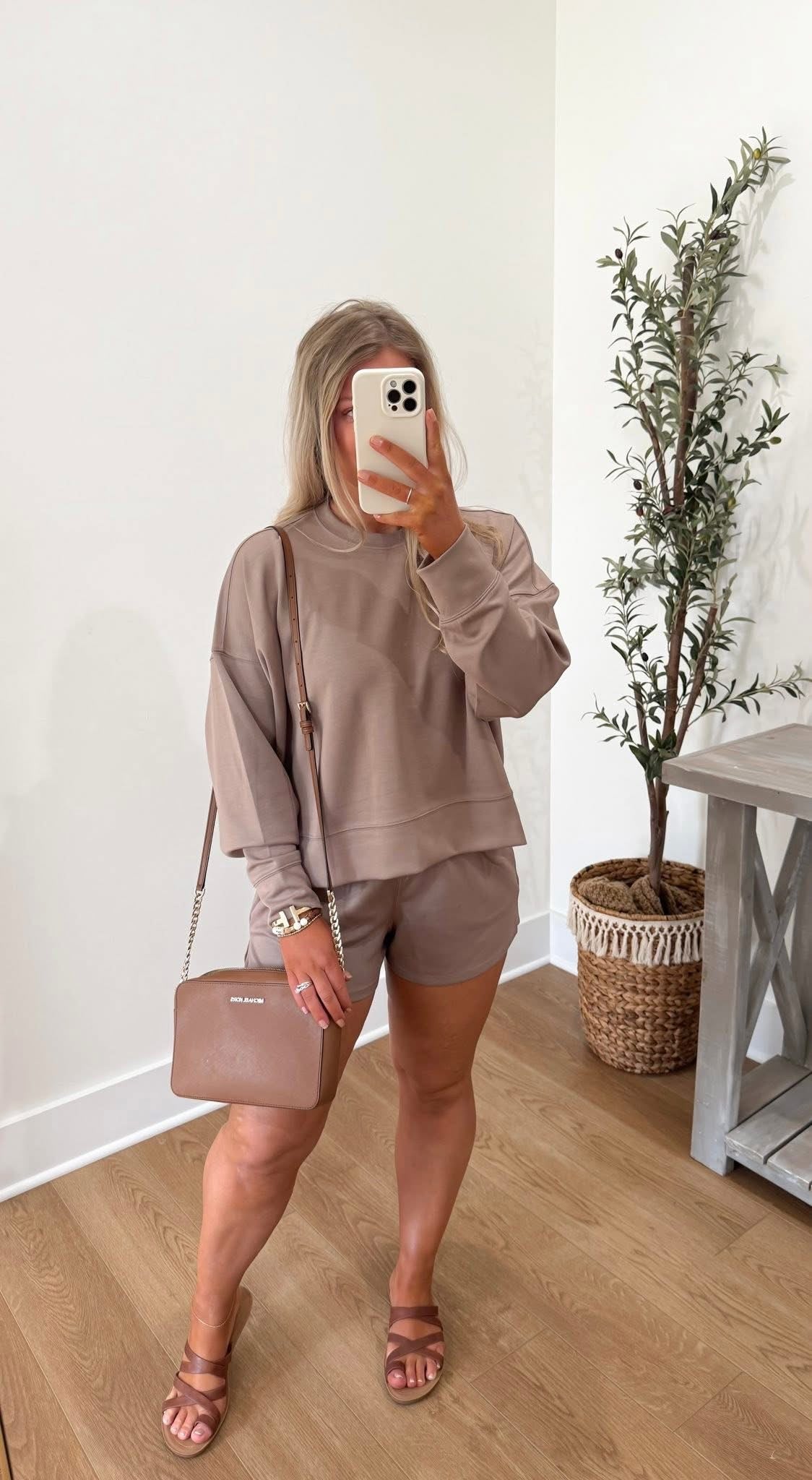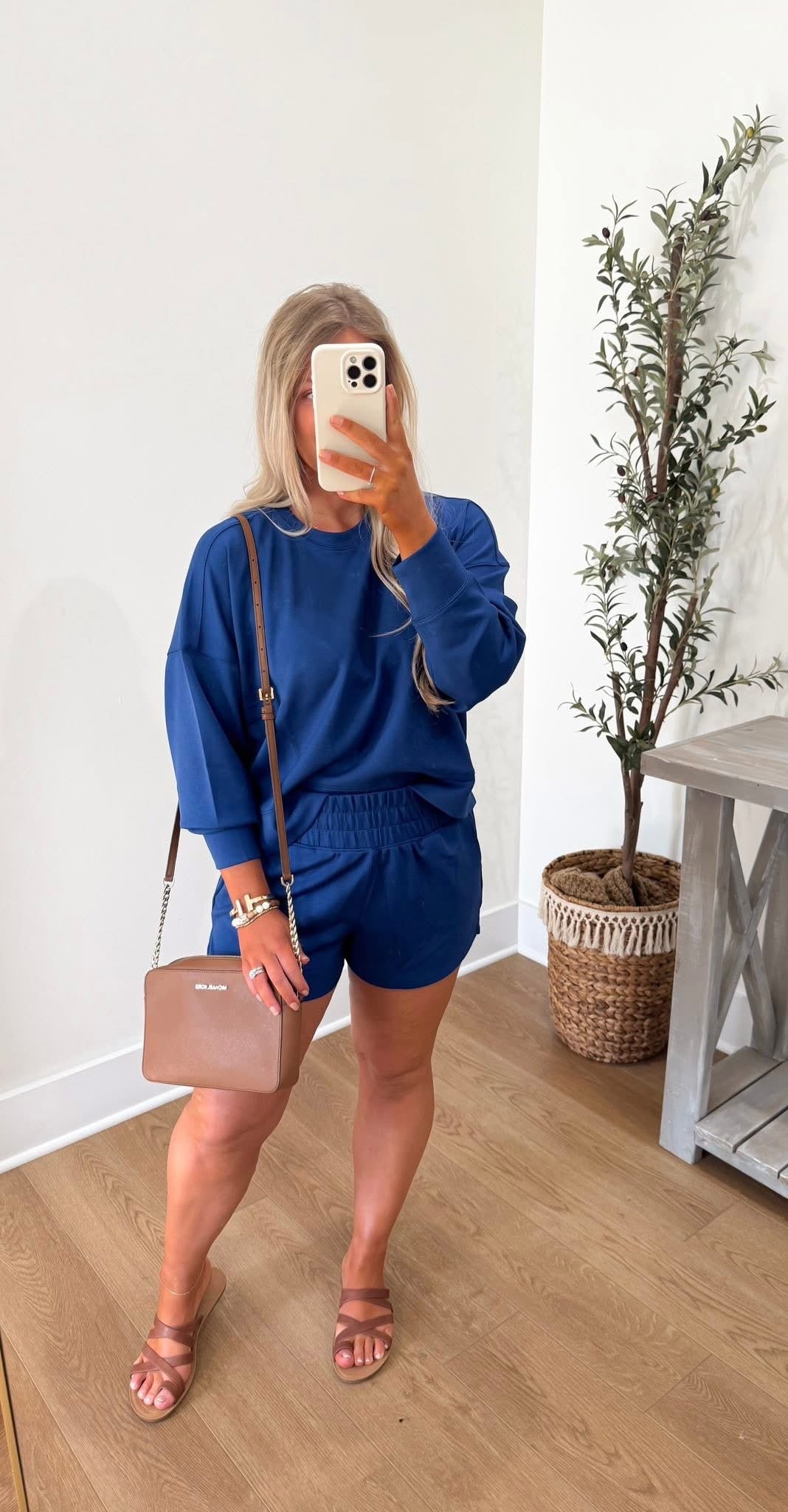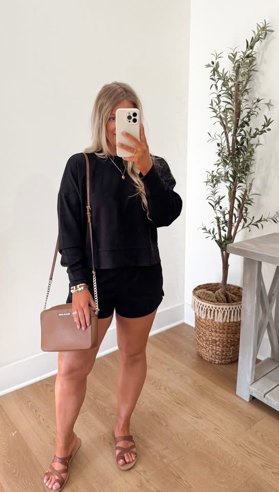 Get comfortable and stylish with the SCUBA Long Sleeve Sweatshirt and Shorts Set! The elastic waistband shorts, featuring convenient side pockets, make this set perfect for any activity.