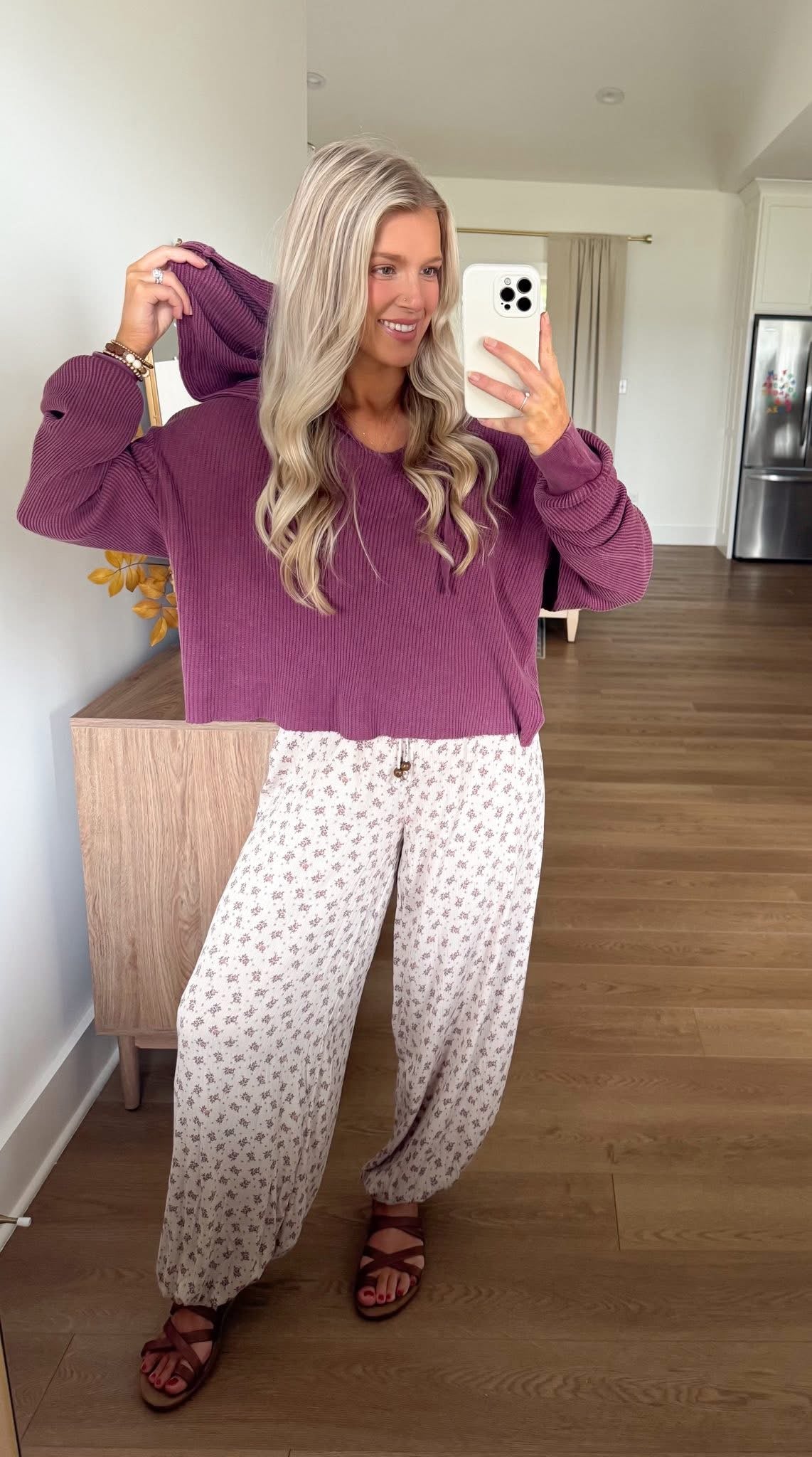 Waffle Knit Hoodie - Dark Cherry