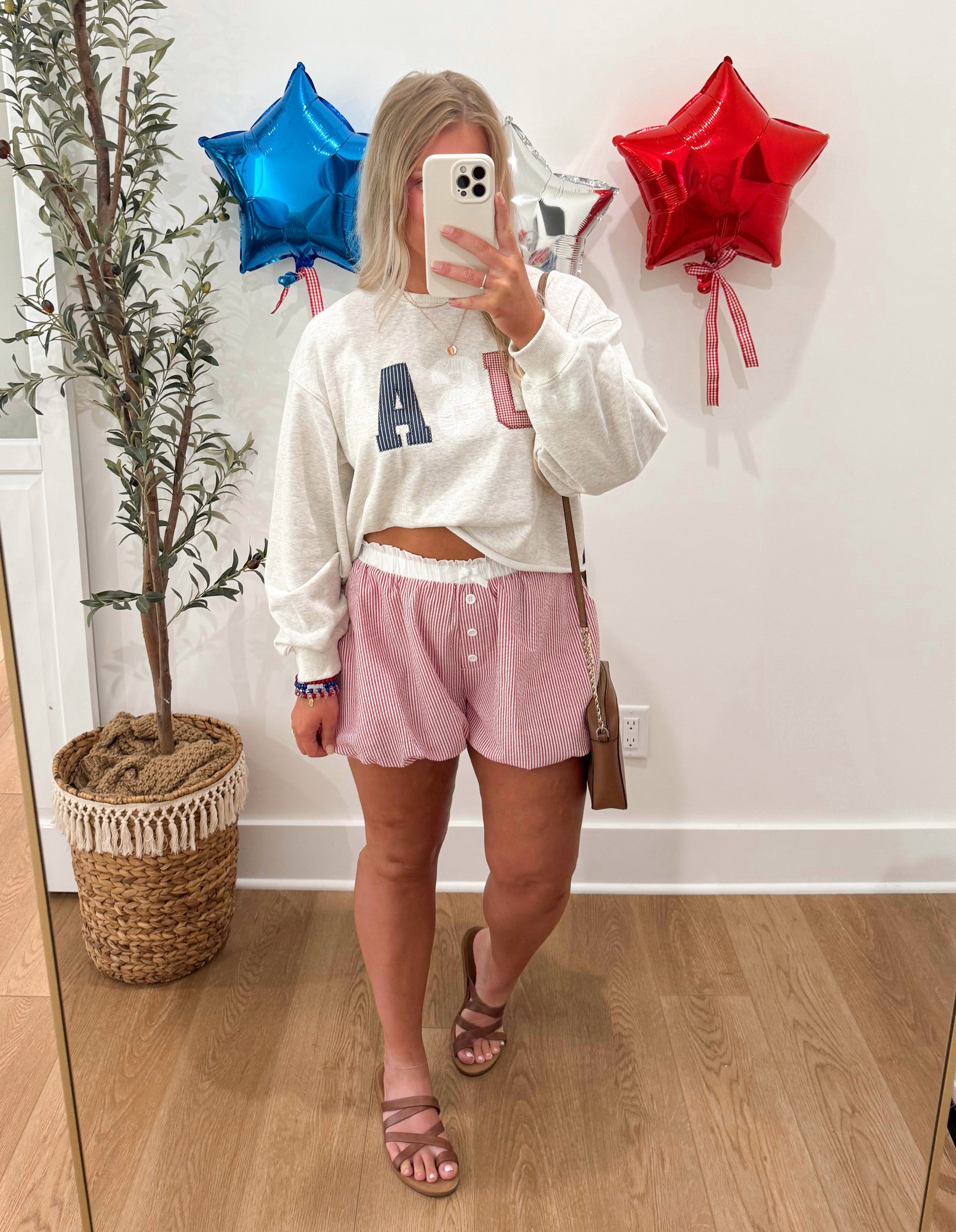 Elevate your casual wardrobe with this patriotic crew neck sweatshirt featuring a bold "USA" embroidered design. Crafted for comfort with long sleeves and a classic silhouette, this novelty piece combines national pride with everyday wearability. Perfect for seasonal celebrations or adding a statement element to your relaxed outfits.