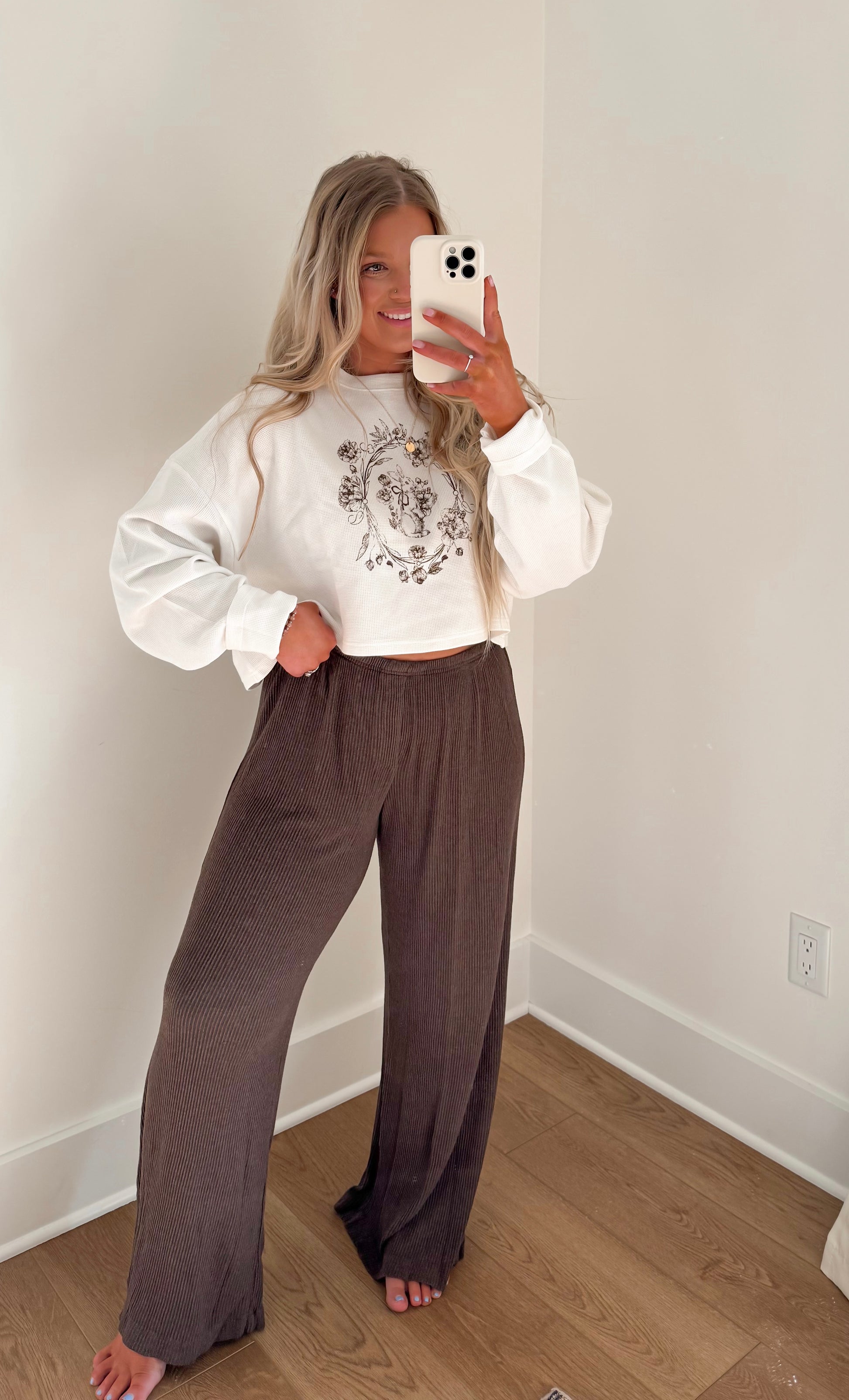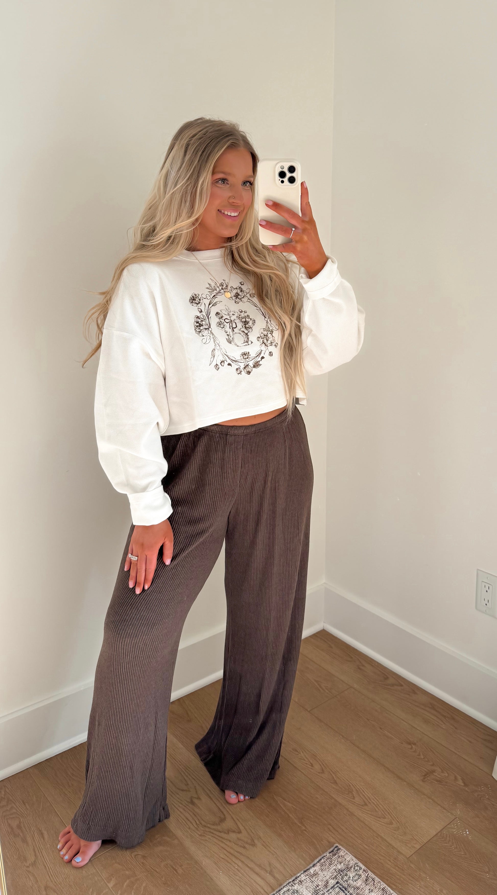 Introducing our Bunny Graphic Crew - a cozy and quirky addition to your wardrobe! Featuring a waffle knit thermal fabric and a vintage-style bunny framed in flowers graphic print. With a relaxed fit and cropped length, this sweatshirt is perfect for adding a playful touch to any outfit. Hop to it and grab yours today!